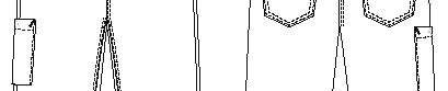Lille buet forstykke med praktisk trippellomme foran. Lommen består af et stort og to mindre rum. To bæltestropper og to bindestropper, som kan bindes bagpå eller føres rundt om livet.