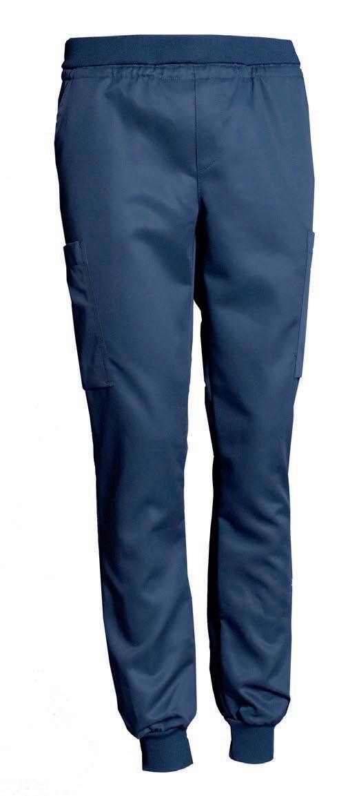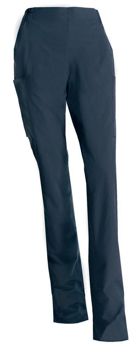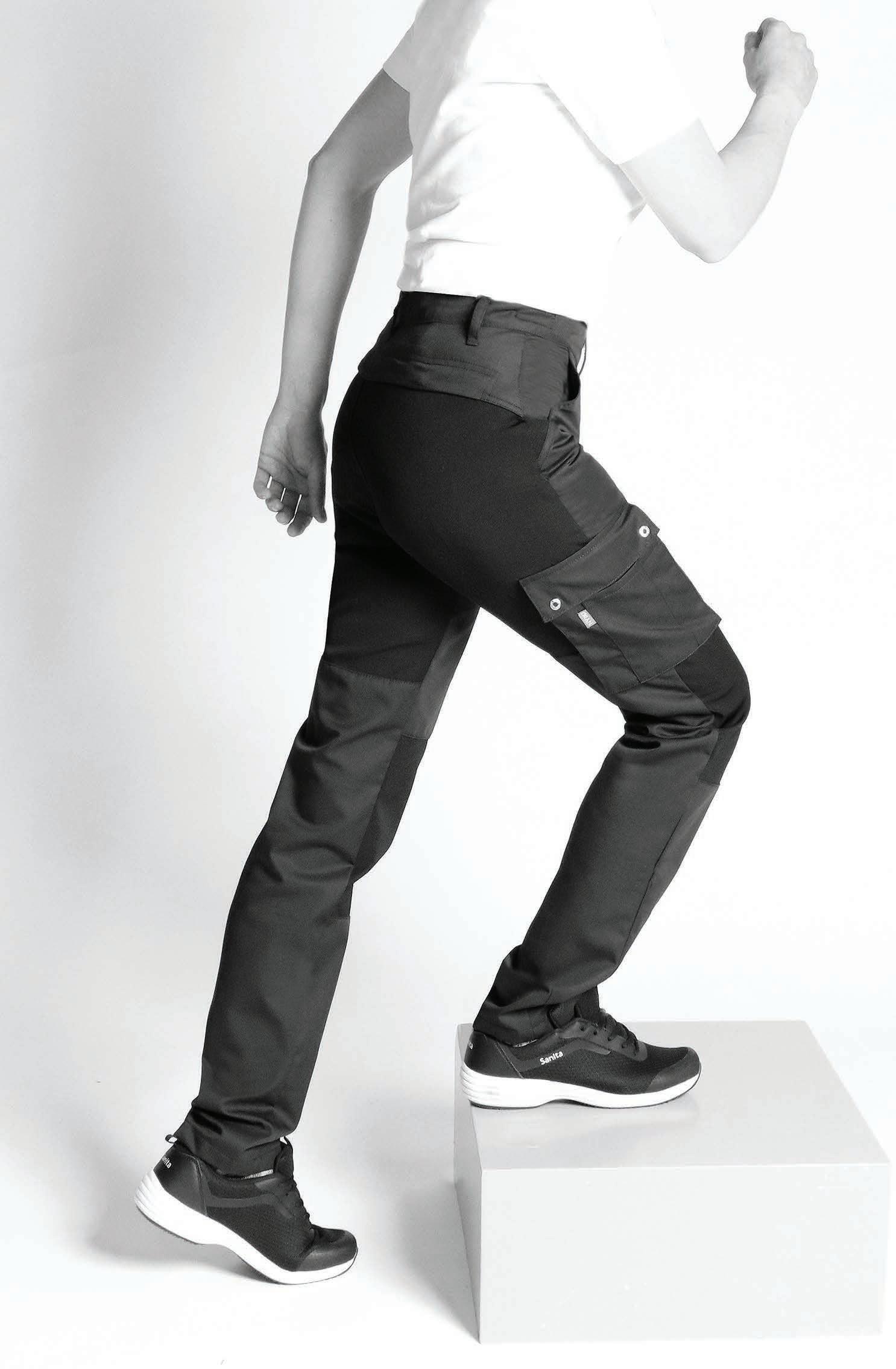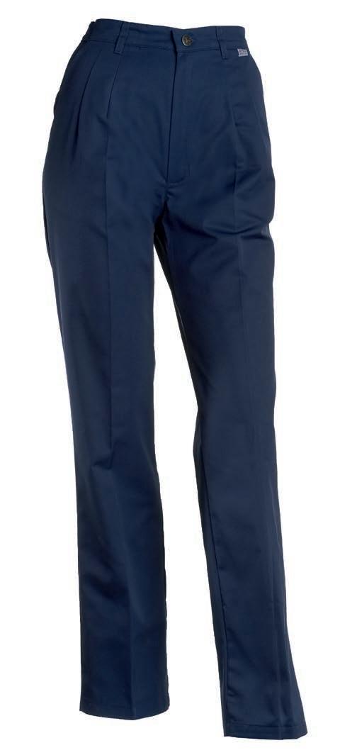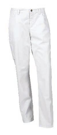 Slidstærk damekokkebuks med regulerbar elastik i linningen, som sikrer god komfort og øget levetid. Modellen har skrålommer og to baglommer.