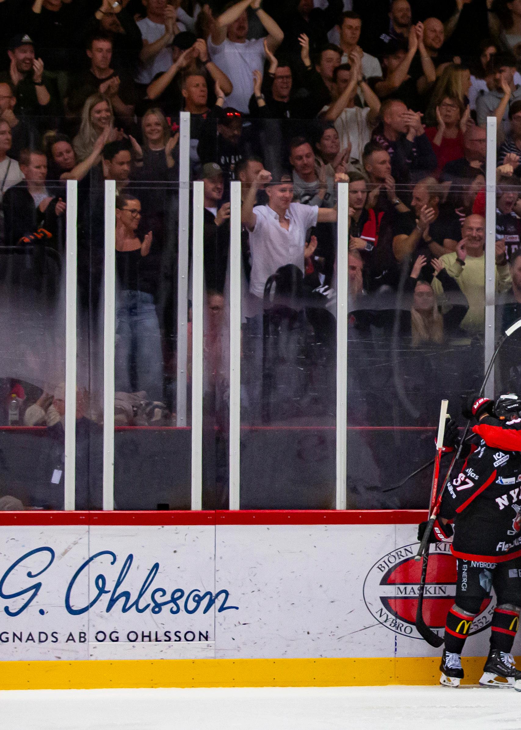hemmaborgen säsongen 23/24 hade Nybro vikings ett publiksnitt på 2 192 personer vilket innebär en beläggningsgrad på över 92% och bäst i hockeyallsvenskan.