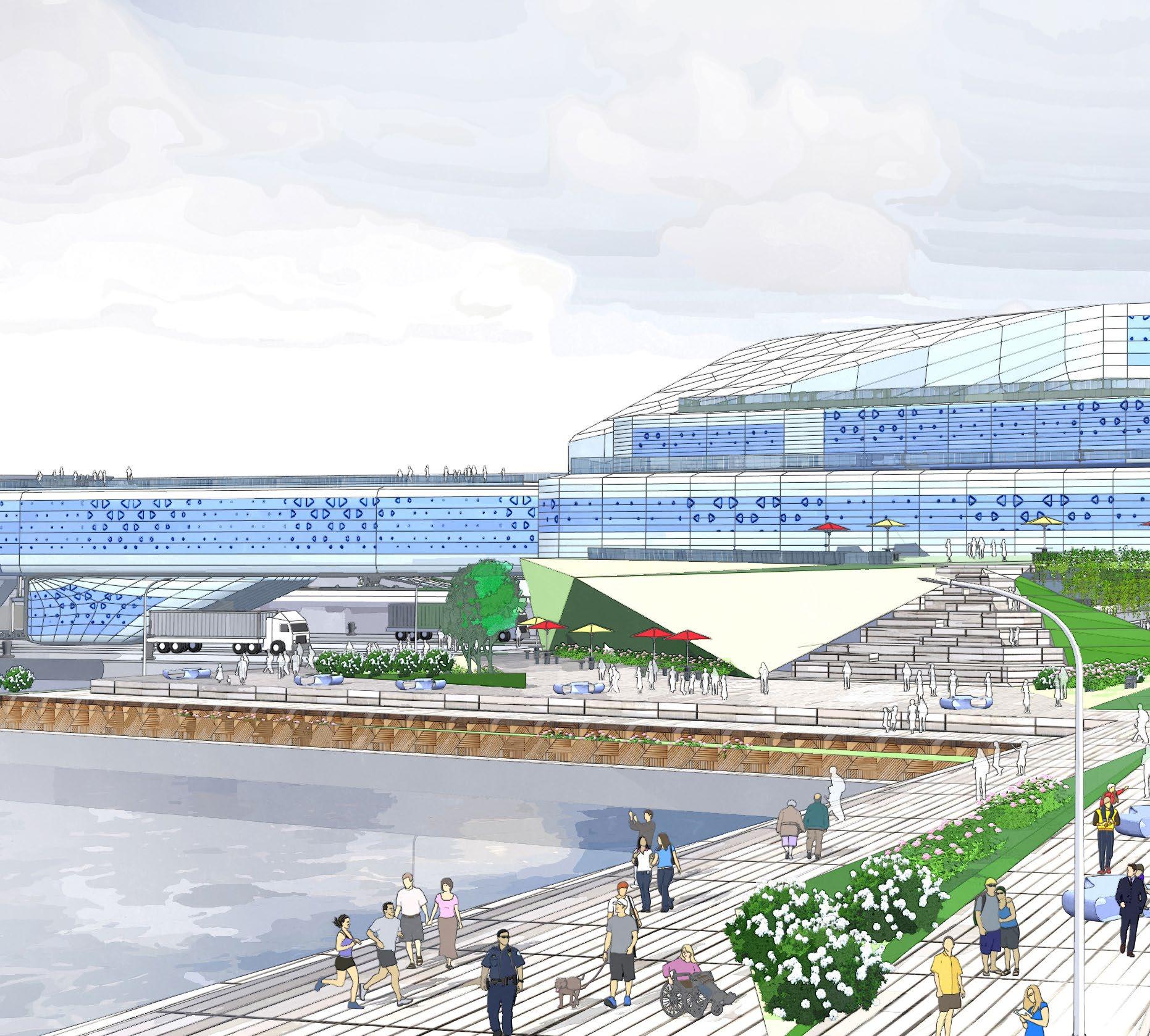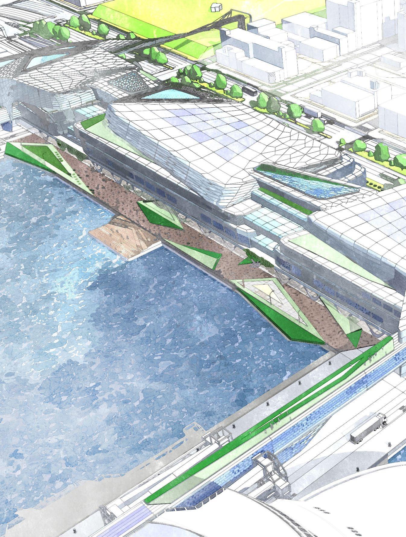 Informed by extensive community engagement, the heart of this plan lies in redeveloping the site into a truly public asset. The Plan will create a porous site that enables the public to connect with the terminal and waterfront through vibrant, accessible public spaces and improved bikeways and walkways. We are leveraging our waterways for both passenger and freight movement, and activating the waterfront with new amenities, connections, and opportunities.