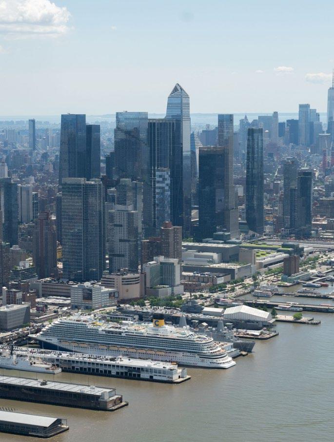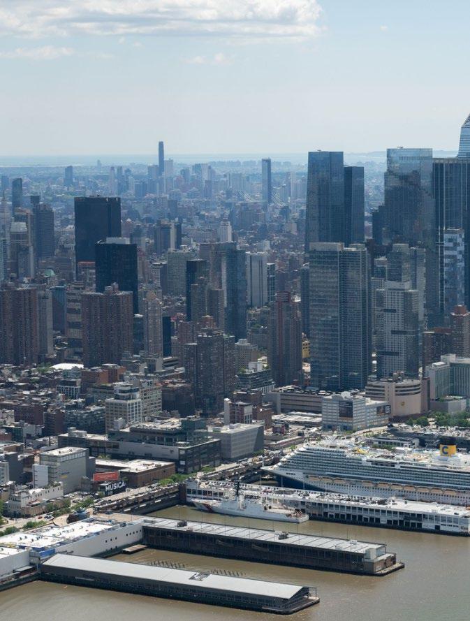 Despite these challenges, MCT has served nearly 20 million passengers over the last two decades. Its prime location offers the potential to tap into New York’s significant and potential cruise market. The region boasts over 60 million people living within 300 miles of the city, and in 2024 alone, 2.2 million passengers sailed from New York and New Jersey docks. Beyond market strength, MCT’s location is wellsuited to evolve into a world-class, dynamic cruise facility. With unobstructed views of the Hudson River to the west and the iconic Manhattan skyline to the east, the terminal offers cruise passengers unmatched access to New York City. Its direct connections to the West Side Highway, major transit hubs like Grand Central Terminal and Penn Station, and close proximity to the city’s commercial and entertainment core make it an ideal gateway to the best that New York City has to offer.