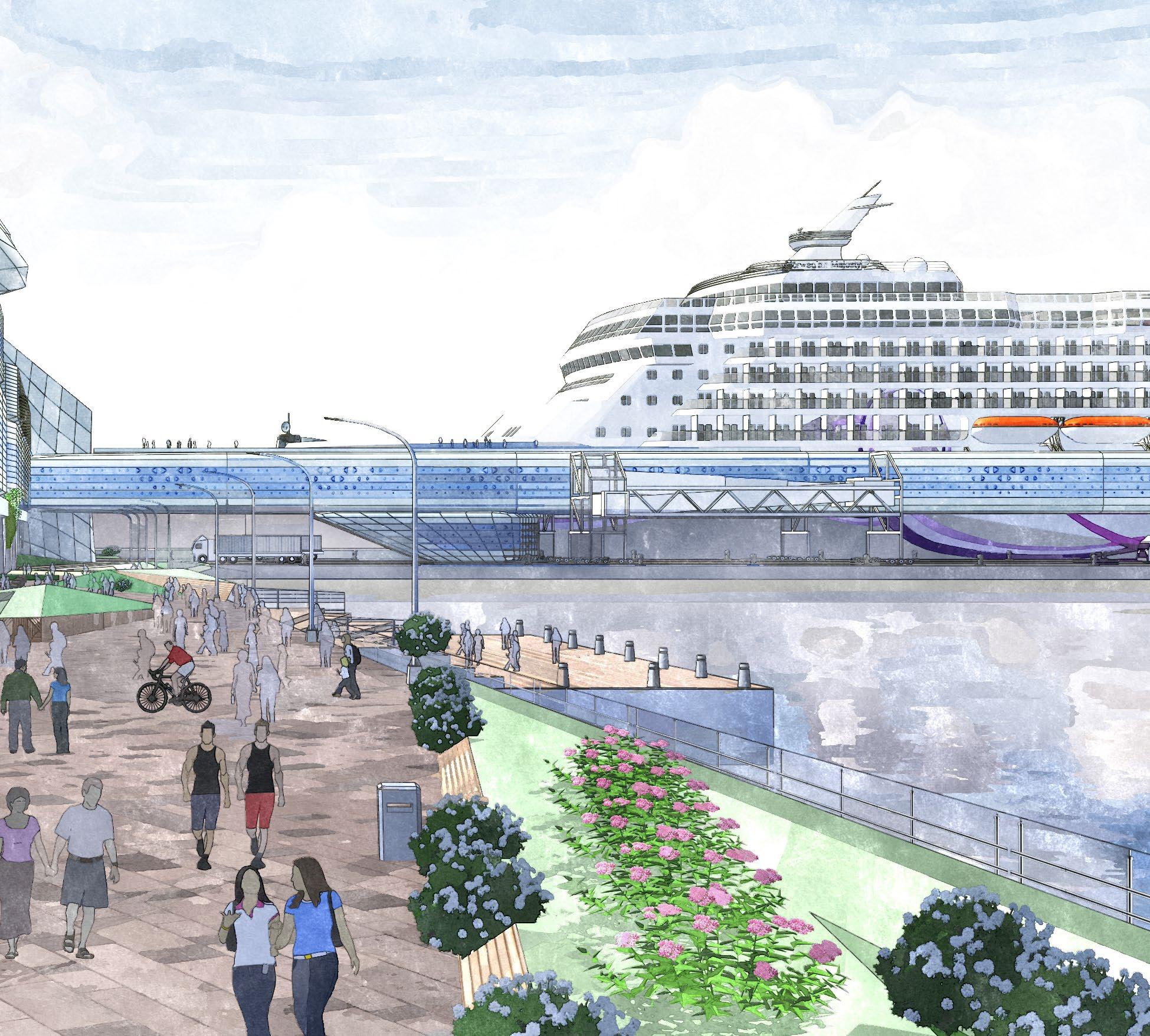 The terminal will also strive to achieve industry-leading sustainability by incorporating on-site power generation and full electrification of the terminal building. Finally, the site is envisioned for multiple waterdependent uses to maximize its economic and community value, driving local job creation and sustained economic activity.