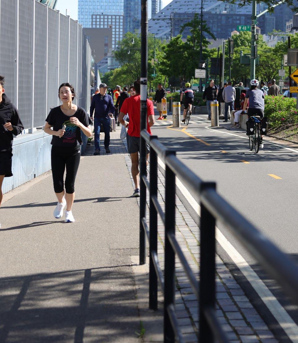 The Plan must integrate the terminal’s secure zones with the surrounding public areas, using architectural and landscape elements to enhance both accessibility and visual appeal. Different modes of transportation will be effectively separated by widening the Route 9A Bikeway/ Walkway, segregating pedestrians and cyclists, and implementing grade separation between the West Side Highway and the terminal.