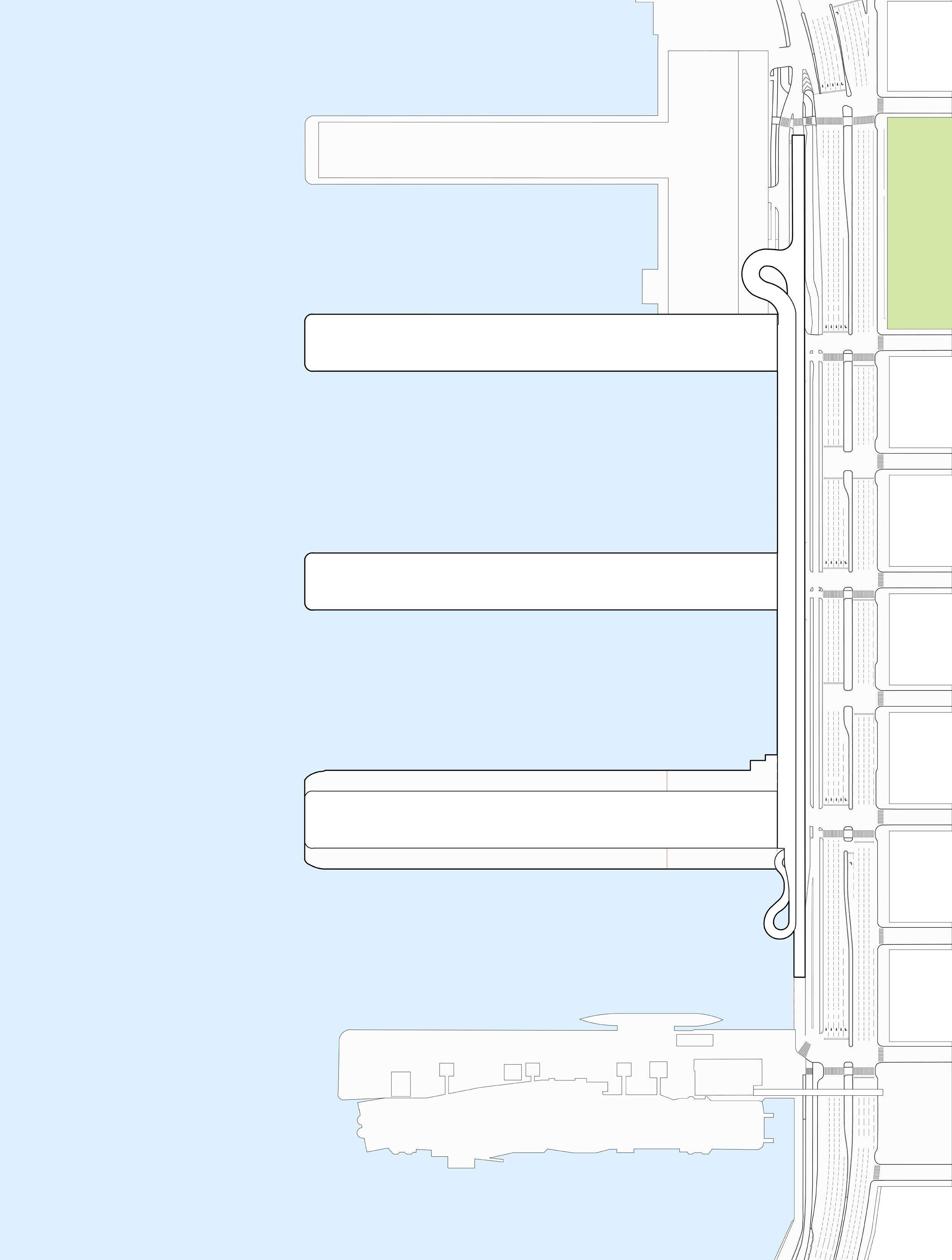 The imperative for action is clear in two critical areas. First, the condition and layout of the terminal’s infrastructure imposes operational constraints and challenges to urban integration. Pier 92 is already inoperable, and Piers 88 and 90, supported by their original 1930s timber piles, are at serious risk of soon meeting a similar fate. The ground transport area and viaduct no longer provide adequate staging and queuing capacity, contributing to congestion and overflow that disrupts the adjacent West Side Highway. Further, the viaduct, combined with security fencing around the entire site, physically isolate the facility from the Hell’s Kitchen neighborhood. These mounting constraints create an opportunity to reimagine the terminal as a more integrated and publicly accessible urban asset.