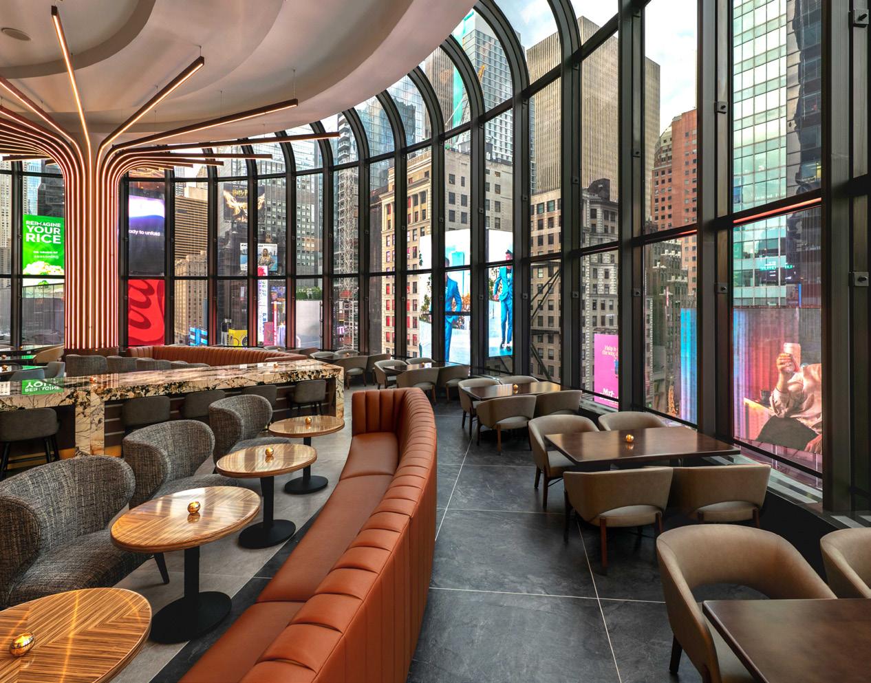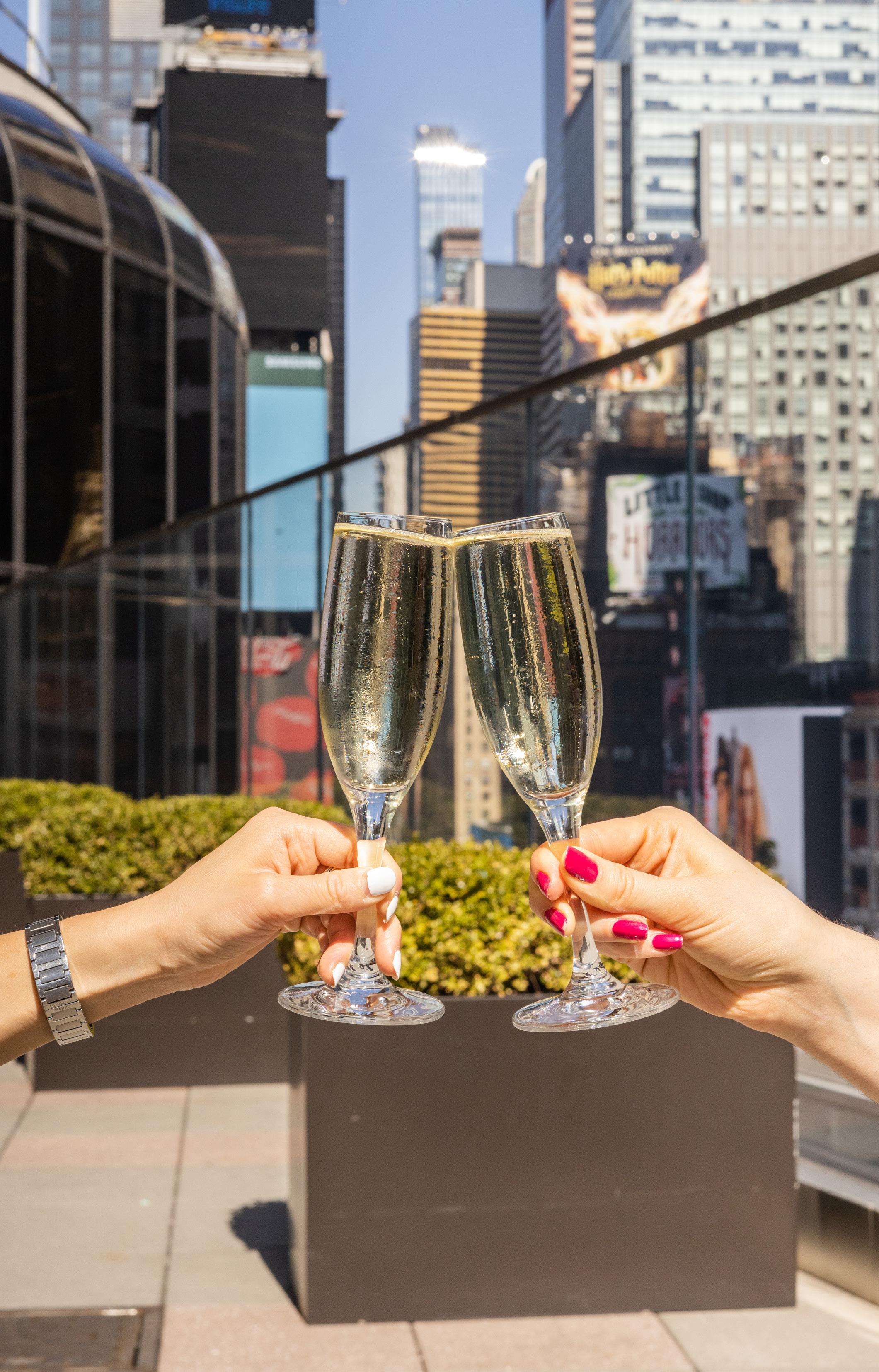 Perched eight floors above Times Square, our modern outdoor terrace offers sweeping views of the iconic New York City skyline. Elevate your experience and soak in the vibrant energy from above.