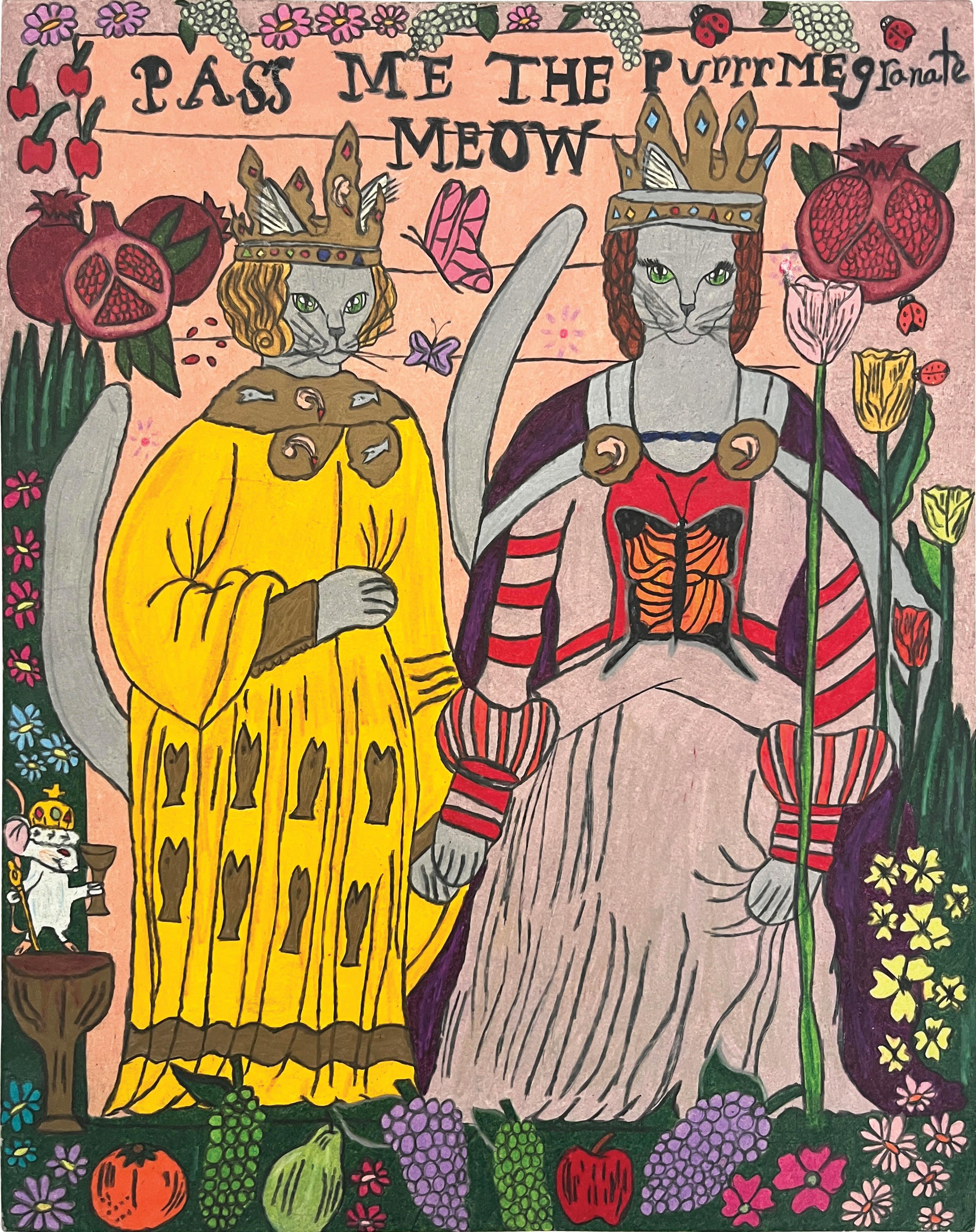 Jennifer Quinones, Pass Me The Purrrmegranate Meow, 2023. Colored pencil on paper, 13 x 10.5 inches
