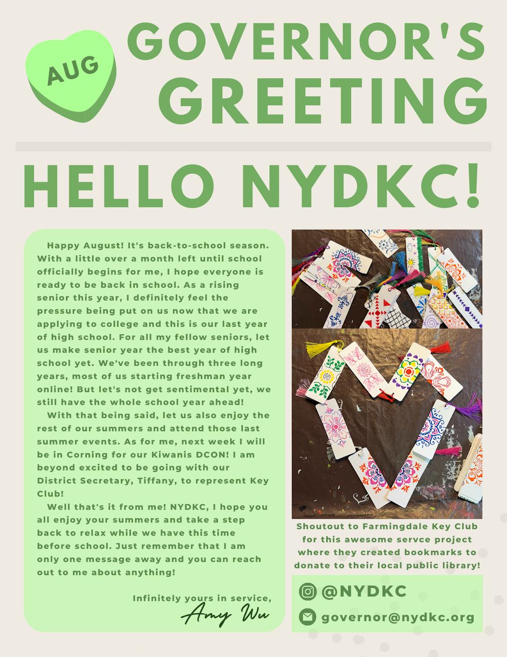 That’s because, New York, you have a reputation that is recognized across Key Club International. One of relentless compassion, bubbly energy, and fierce determination. Your engagement is inspirational, and your passion speaks volumes. I have proudly watched you all pour your hearts and souls into our organization, Key Club International. Because of your dedication, passion, and perseverance, Key Club has flourished this past year.