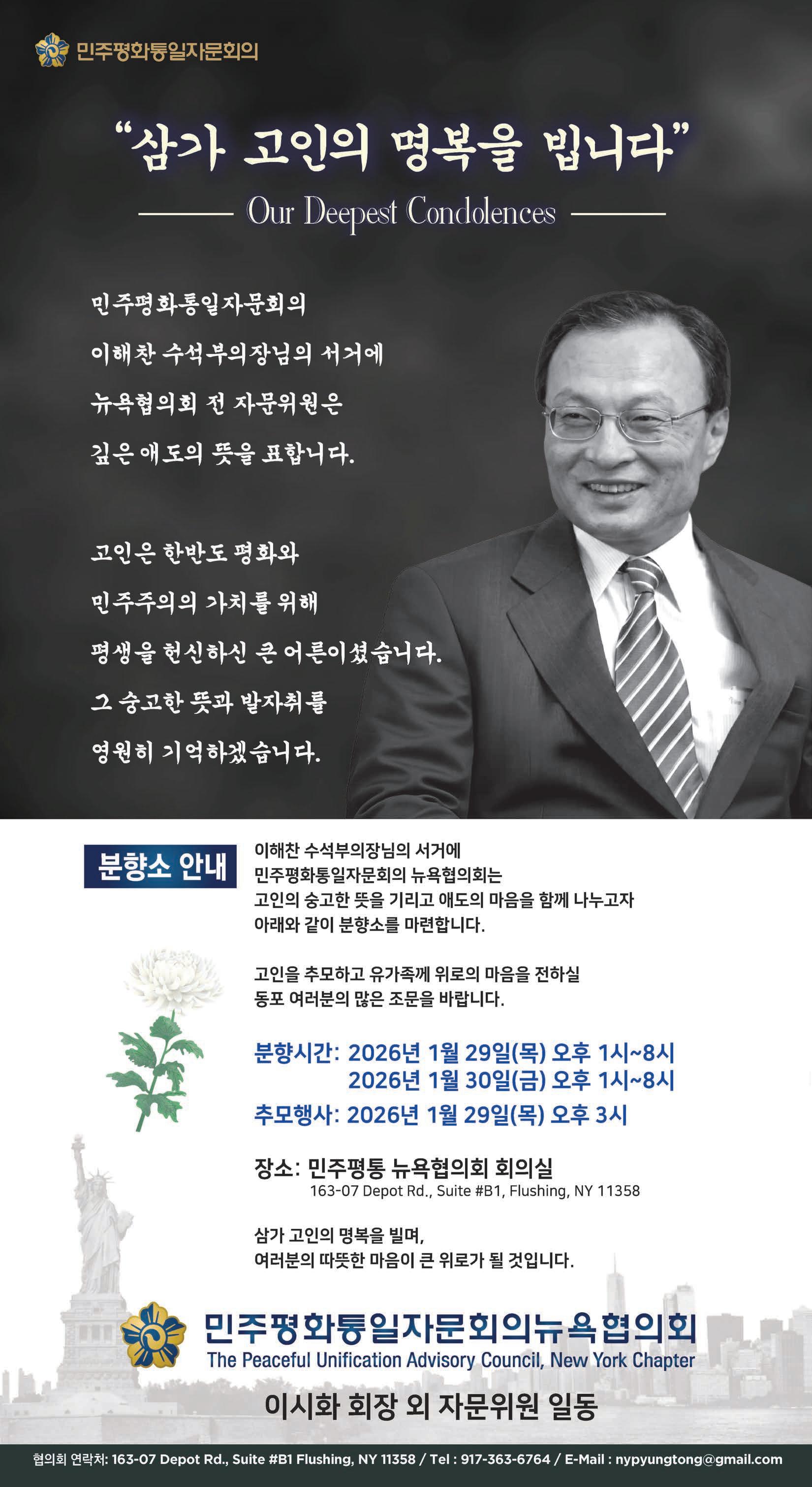 이번 간담회는 한인들이 현장 에서 겪고 있는 어려움과 변화에 대해 직접 공유하고, 멩 의원으로 부터 연방 정부 차원에서의 지원 및 대응 노력을 듣기 위해 마련됐 다. 간담회에서는 최근 한인 이민 자 및 지역 주민들이 체감하는 이 민 관련 불안, 경제적 불안정, 필 수 서비스 접근 장벽, 문화·언어 적으로 적절한 지원의 필요성 등 이 주요 의제로 논의됐다. 참석자들은 각자의 기관과 공 동체에서 접하고 있는 사례와 현 장 동향을 공유했으며, 커뮤니티 가 필요로 하는 지원이 연방 정책 및 자원과 더 효과적으로 연결될 수 있는 방안에 대해 의견을 나눴 다. 멩 의원은 의회에서 추진 중인 관련 활동과 커뮤니티 지원 노력 에 대해 공유했으며, 참석자들은 향후에도 지역 현장의 필요가 신 속하고 정확하게 전달될 수 있도 록 지속적인 소 통과 협력 체계 를 강화하기로 뜻을 모았다. 참석자는 이 현 택 (퀸즈한인 회장), 김명미(뉴 욕한인봉사센터 (KCS) 회장), 조원태 목사, 이용 복 목사, 유죠안(Asian American for Equality), 이지혜(뉴욕가정 상담소(KAFSC) 대표), 김동찬 (시민참여센터 대표), 인 리차드 (시민참여센터 사무총장), 김윤지 (민권센터), 김성월(한주미사랑협 회), 최다미(KCMB-TV) 등 이 다.
