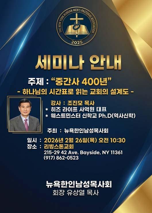 뉴욕한인남성목사회, 26일 리빙스톤교회서 세미나
