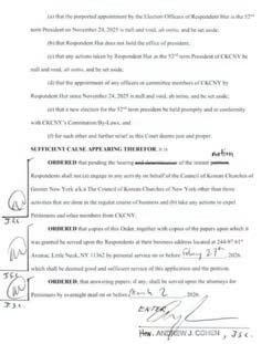 뉴욕주 대법원 브롱스 카운티 (담당 Andrew J. Cohen 판사)는 2월 9일 뉴욕지구한인교회협의회