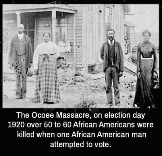 하고 결과 불복을 선동하는 언어 는 결국 행동을 낳는다. 오코이에 서 무장 백인들이 투표하러 가는 흑인들을 막아섰던 장면은, 다른 복장을 한 채 오늘로 이어지고 있 다. ■ 민주주의는 기억 위에 서 있다 오코이 학살이 보여주는 진실