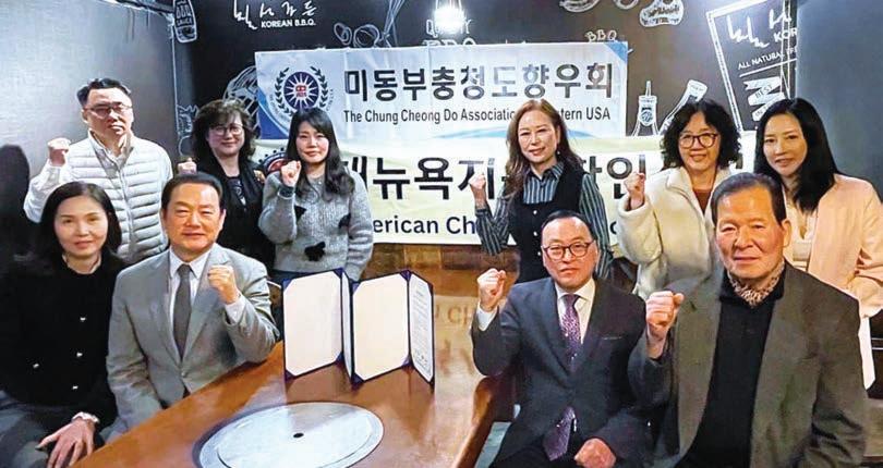 이에 푸른투어 문조 대표는 “충청도 향우분들의 든든한 동반 자가 되어 기쁘며, 향우회원들을 위한 맞춤형 서비스와 지원을 아 끼지 않겠다”고 화답했다. 이날 행사는 훈훈한 분위기 속 에서 진행되었으며, 특히 바쁜 일 정 중에도 이종철 상임고문, 팰팍 민석준 시의원, 뉴저지대한체육 회 박정열 회장, 향우회임원진들 이 참석해 두 기관의 새로운 시작