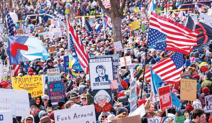 이날 시위의 중심은 미네소타주의 미니애폴리스·세인트폴이었다. 미네소타주는 지난 1월 이민세관 단속국(ICE)의 이민 단속 중 미국 인 르네 굿, 알렉스 프레티 등 미 국인 2명이 연방 요원의 총격을 받 아 숨진 곳으로, 이후 트럼프 행정 부에 대한 저항의 중심이 됐다. 시내 행진을 거친 이들 등 수만 명이