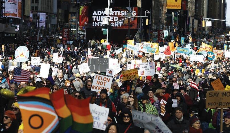 ◆ 뉴욕 맨해튼 = 맨해튼에서 열린 시위엔 배우 로버트 드 니로, 레티샤 제임스 뉴욕주 법무장관 등이 수천 명과 함께 참석했다. 드 니로는“(노 킹스 운동을) 150% 지지한다”고 말했다. 그는