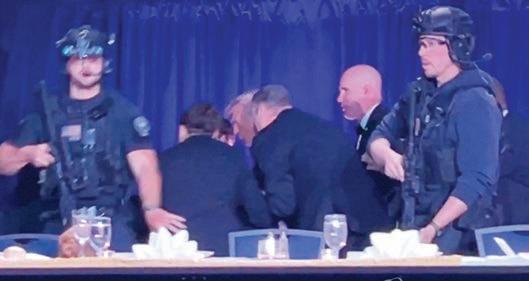 관한 단독 범행으로 본다면서도, 자신을 겨냥한 암살 시도일 가능 성도 있음을 시사했다. 현장에서 붙잡힌 총격범은 명 문 공대를 나온 캘리포니아 출신 의 전직 강사로, 연방수사국(FBI) 이 구체적인 범행 동기 등을 수사 중이다. ◆ 백악관출입기자협회 만찬 식사중 총성…트럼프 긴급 대피 트럼프 대통령은 이날 오후 8 시께 워싱턴DC의 워싱턴 힐튼 호 텔에서 열린 백악관출입기자협회 (WHCA) 주최 만찬에 참석했다. 사건은 트럼프 대통령 입장 후 국가 연주 의식이 끝나고 식사가