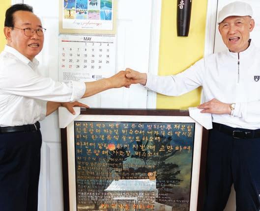 업무협약 따라 디지털 멘탈헬스케어 서비스 점검 및 전략 논의 한-미 디지털 멘탈헬스케어 서비스 추진 및 기업 간담회가 16일(목) 맨해튼에 있는 뉴욕대학교 의과대학 랑군병원 세미나실에서 열 렸다. [사진 제공=KCS] 뉴저지 팰리세이즈파크한인회(회장 오대석)는 27일(월) 팰리세이즈파크 타운에서 주최한 메모리얼 데이 행진에 참여했다. 행사 후 폴 김 팰팍 시장(맨 오른쪽)과 함께 회원들이 기념사진을 남겼다. [사진 제공=팰리세이즈파크한인회] 팩팍한인회. 팰리세이즈파크 타운 주최 메모리얼 데이 행진 참여 뉴욕한인상춘회 이창우 이사(왼쪽)가 주옥근 뉴욕한미문화원 원장(오른쪽)으로부터 작 품‘예수 나를 위해’를 증정받고 기념 촬영 했다. A2 WEDNESDAY,MAY 29, 2024 종합 뉴욕일보 THE KOREAN NEW YORK DAILY