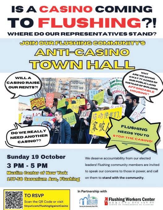 공개했다. 민권센터는 플러싱에 대형 카 지노가 건립되면 ①커뮤니티 취약 계층의 거주지 퇴거와 이주 사태 를 일으키고, 마약 중독과 경제적 어려움을 더욱 악화시키며 ②스몰 비즈니스, 위생, 공공 보건 등 다 양한 주민들의 공공 생활에 부정 적 영향을 미치며 ③경제적 불평