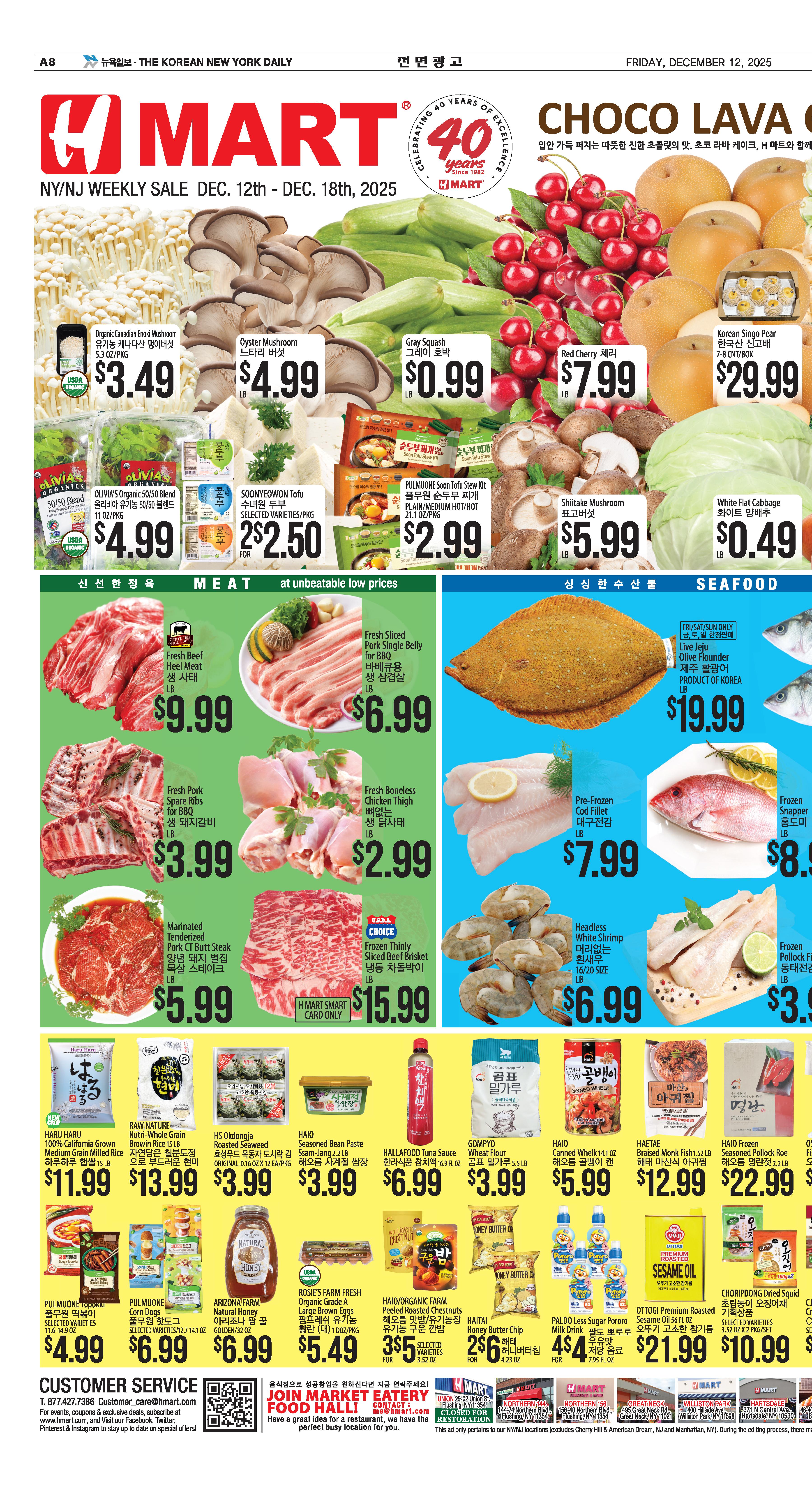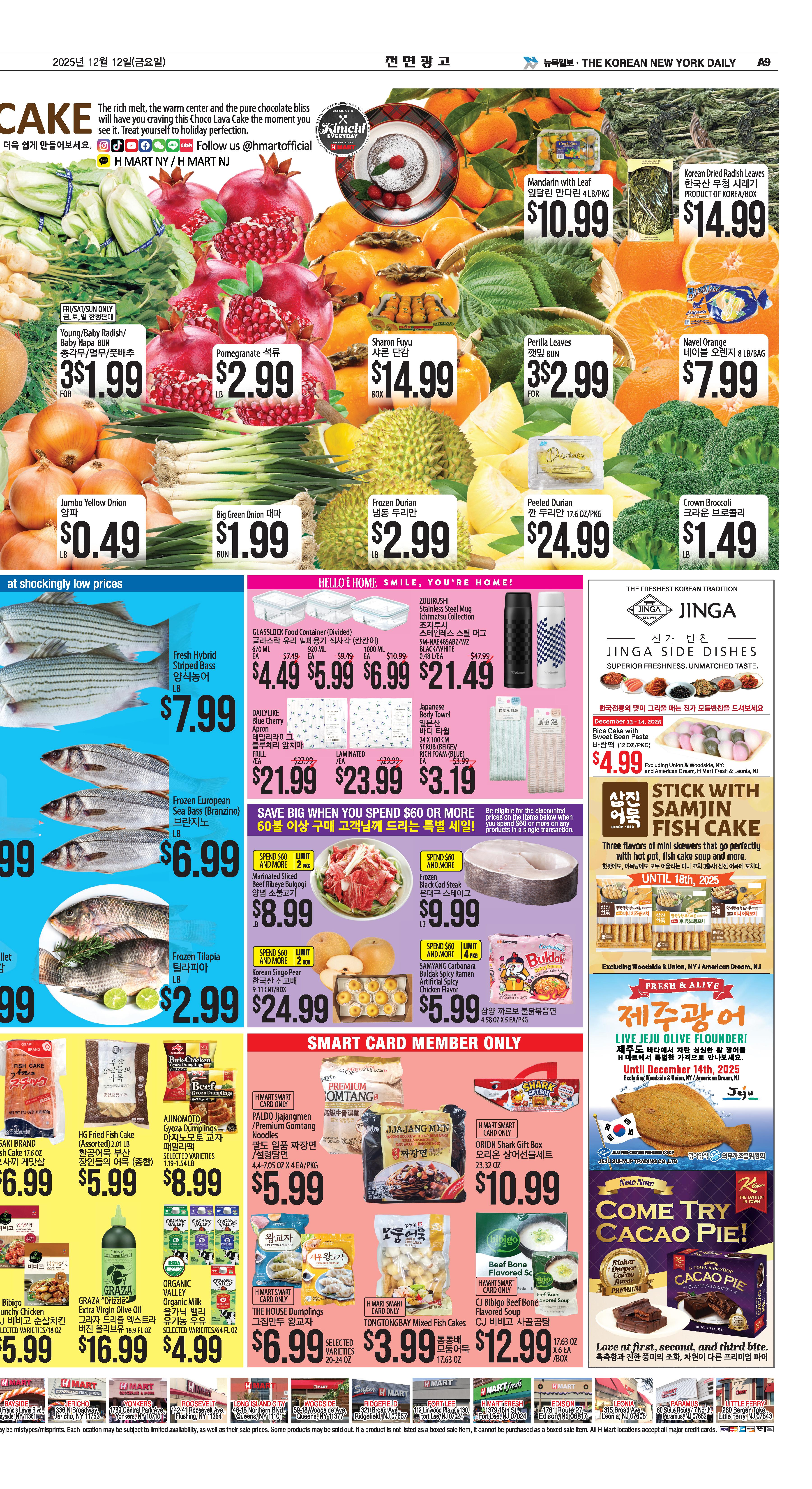 한양마트 플러싱 매장은, 전라 남도 및 전남 중소기업지원센터 가 주관하고 한국의 푸드코리아 와 롯데프라자가 주최하는 전라 남도 농특산물 판촉 특별 앵콜 행 사를 2025년 하반기 마지막 행사 로 12월 11일(목)부터 12월 17일 (목)까지 개최한다.