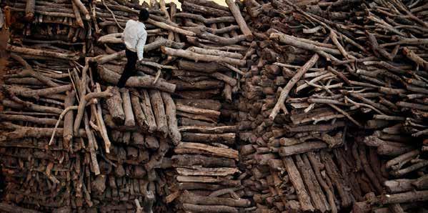 Wood as suggested is a vital material in the cremation process, despite its importance, the way it is kept/distributed/sold is extremely ineffective and uneconomical. Due to the lack of storage facilities, logs are stacked in an alternating fashion (2) along corridors and the ghats, this formation is an attempt to allow the wood to rest in place, and to hopefully dry. However, given the climatic condition of Varanasi, these logs typically take months or more to dry, which is unideal for burning (dried logs are 30% (5) more efficient for burning). Logs are also sold in an extremely inaccurate manner, using counter weights as a measure (3). The approximate amount of wood used to burn a body is determined by weight as well (roughly 500kgs), this often leads to the incomplete burning of corpse due to the inaccuracy of wood weight due to moisture. Trees that are underage, prior to reach their growth spurt are also inevitably chopped due to the lack of knowledge and overwhelming demand for fuel.