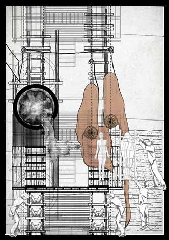 The Project believes that the expression of rituals and beliefs can be integrated into a form of architectural language, however it does also acknowledge the realities of built projects and the necessity for ‘formal’ drawings. Here lies a series of 20 drawings, each pair in tension between allegorical architectural expression, and formal architectural drawings. To which I believe, should be read as a set of instructions that command the relationship between ritual and material properties rather than mere standardization of form.