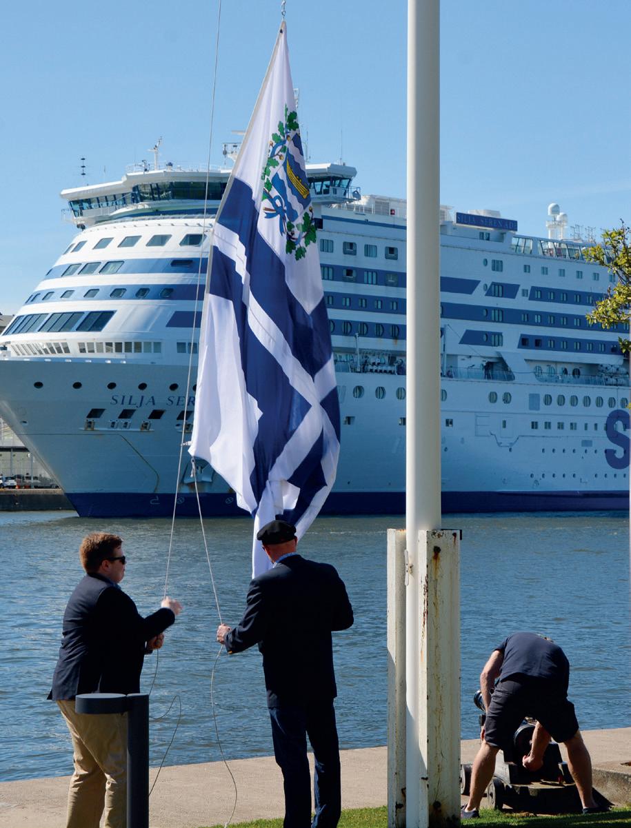 Pärmbild: Flagghissning på Blekholmen, Klubbflaggan 100 år Foto: Johanna Sandman