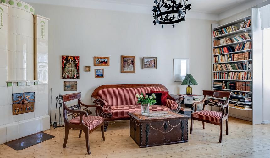Vackert historiskt Ekenäshem, där atmosfären av ett gammalt hus har bevarats. Gamla stans bäst belägna bostad omfattar timmerbyggnadens övervåning med egen ingång. I det här hemmet hittar man stora rum med högt till tak, vackra dubbeldörrar, takornament, sal med väggpaneler, kakelugnar och plankgolv. Bostaden är fullt moderniserad, kök och badrum förnyade, likaså rör och el. Översta våningen bjuder på utsikt i olika väderstreck: till Rådhustorget och stenkyrkan, på vintern också till havet. Från våren till hösten fungerar verandan som sommarrum, matsal och samlingsplats. Trädgården är en oas utan motstycke.