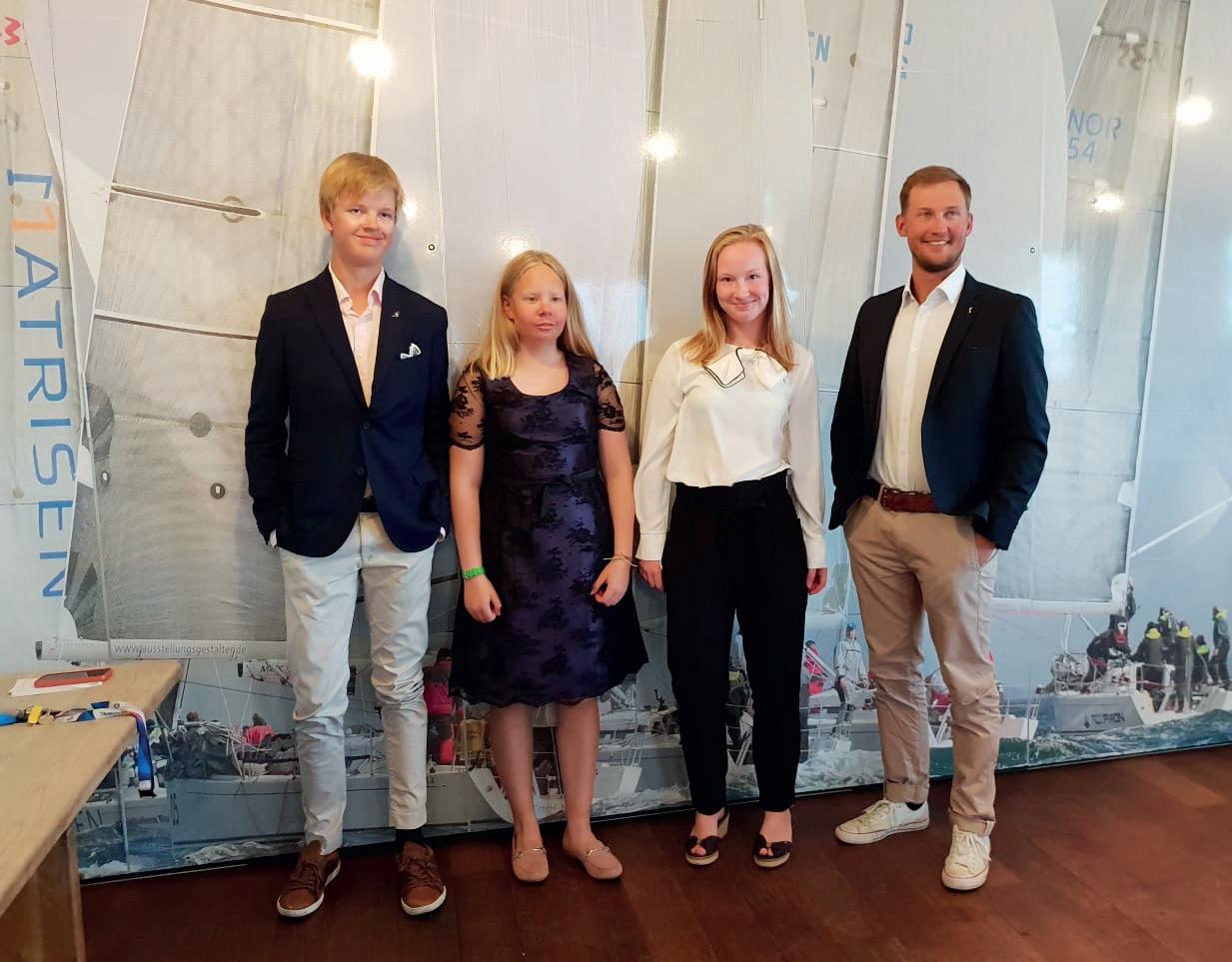 Hela gänget på Brändö Seglare: från vänster Uffe och Kaija Haga, Anders och Tua Karlsson, Gustav Hafrén.