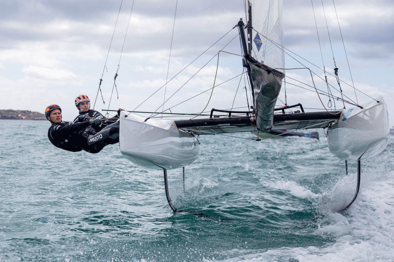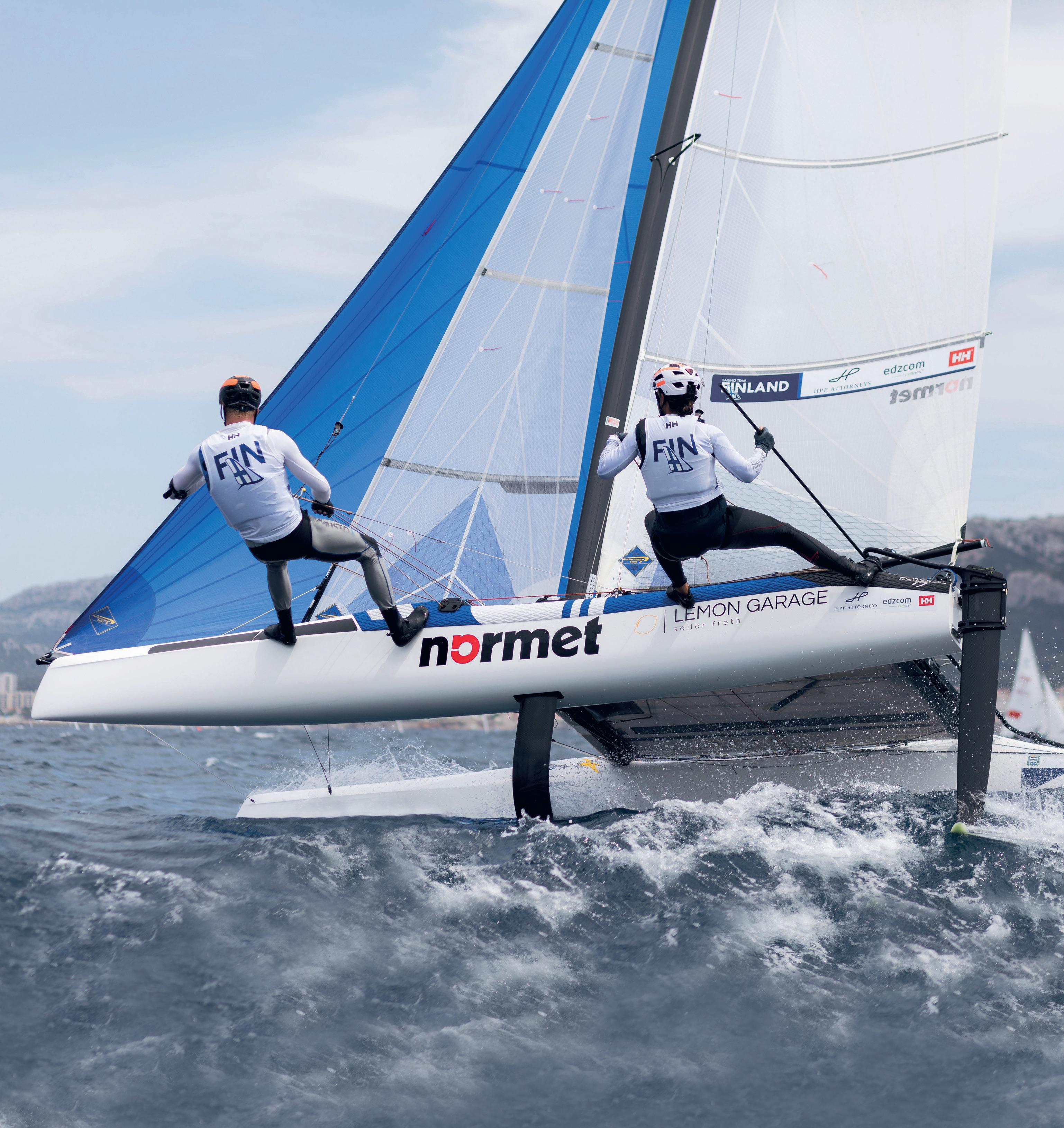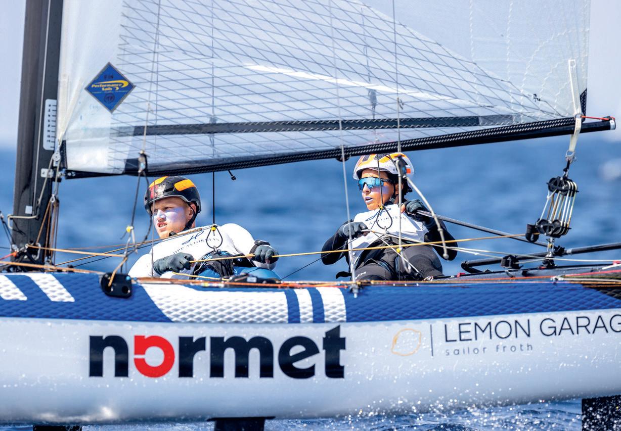 Pärmbild: Nacra 17, Sinem Kurtbay & Akseli Keskinen juli 2023. Foto: Johan Ekblom/SBF