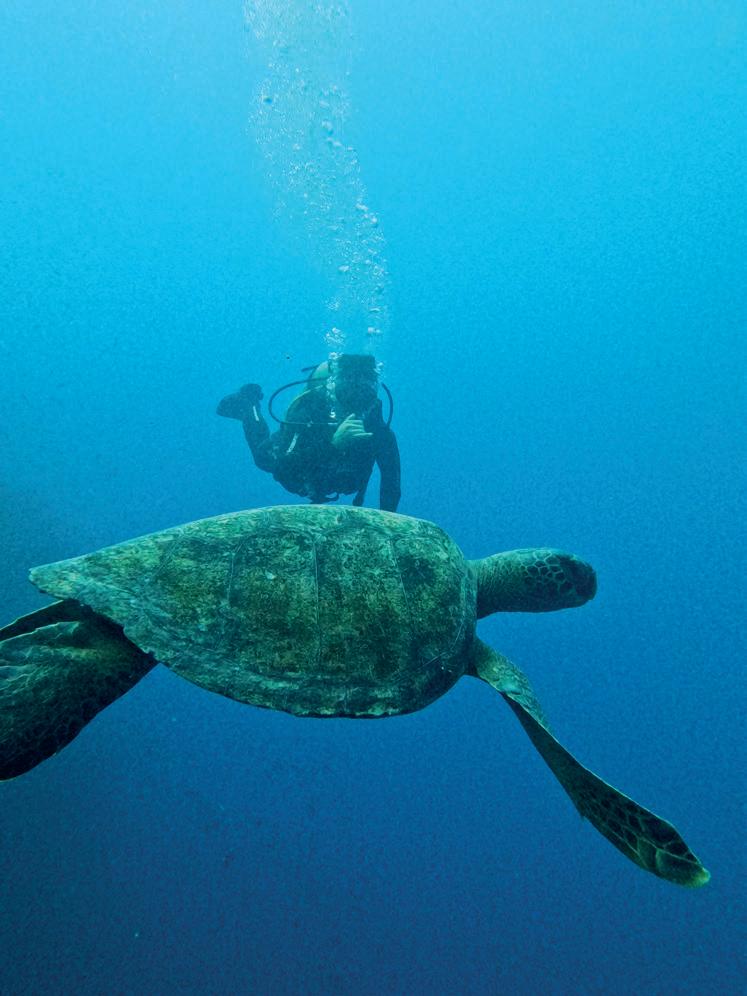 ytan, med världsklass dykning med stora djur. Vi såg bl.a. stora flockar av hammarhajar, gråhajar, havssköldpaddor och lekfulla sjölejon.