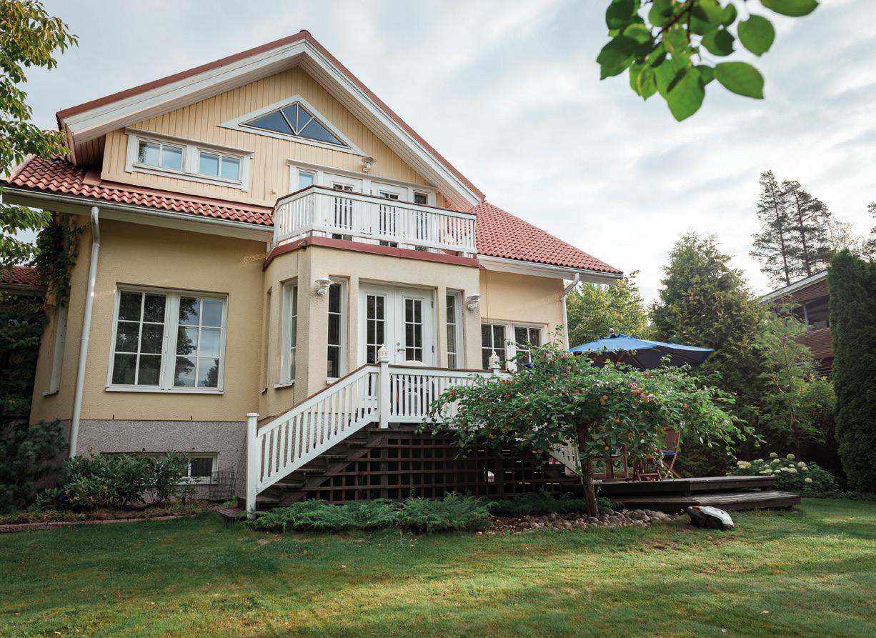 Välskött värdefastighet med hus för även större familj på tryggt och lugnt område. Förutom två boendevåningar finns fräscha 2012 renoverade källarutrymmen med hemteater, minikök, gästrum, snickarbod och vinkällare. Här bor du både ekologiskt och ekonomiskt genom bra isolation, solpaneler och vindenergi. Service och hobbyn inom promenadavstånd ger möjlighet till ett bilfritt liv. Egnahemshuslikt boende i bostadsaktiebolagsform, skatt endast 2 %. Besittningsområde 688 m2, välskyddad gård i söderläge. Välkommen att bekanta dig med detta underbara hem!