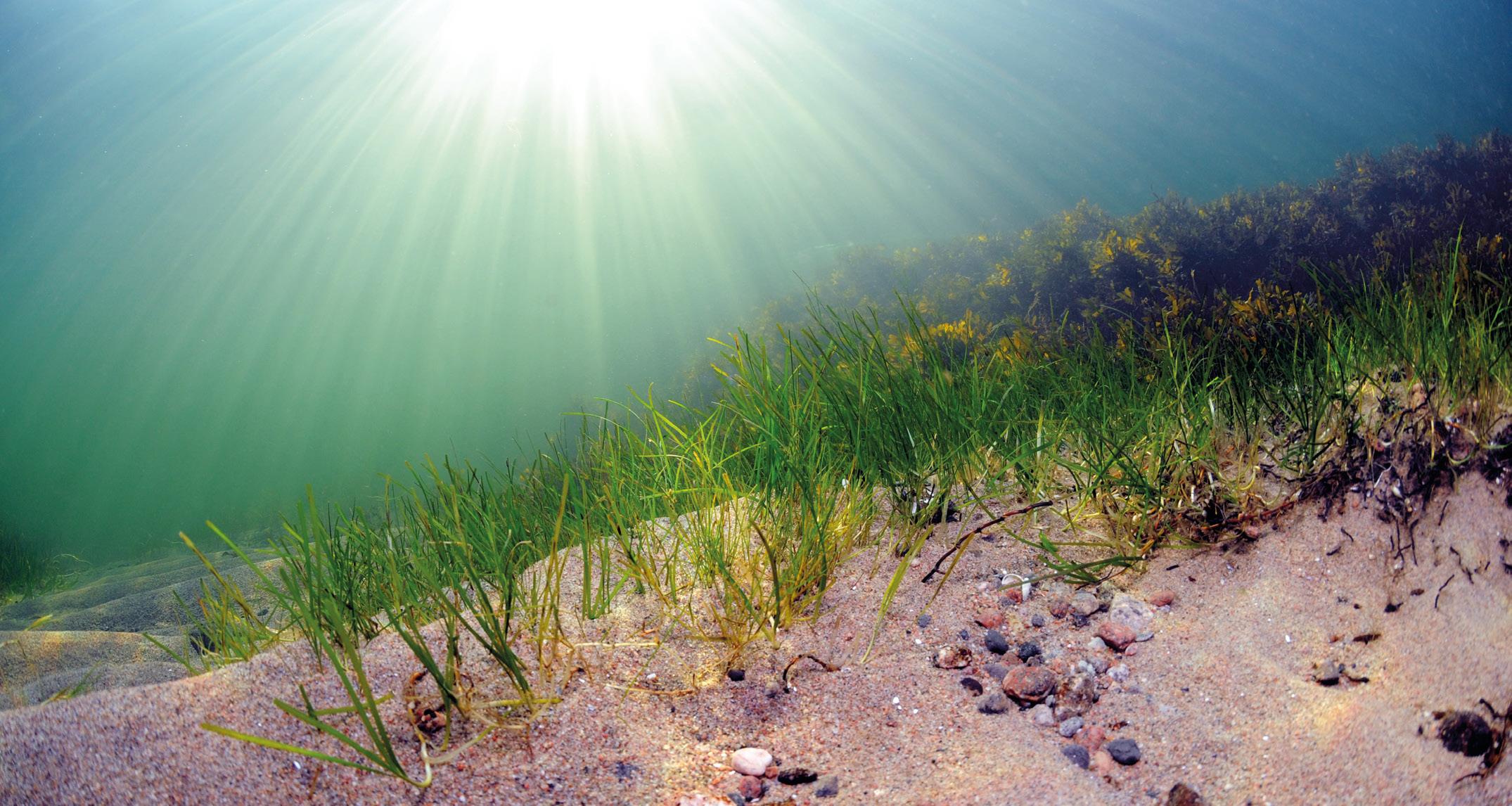 De två viktiga nyckelarterna i Östersjön, ålgräset och blåstången. Ålgräset binder effektivt kol under vattnet.
