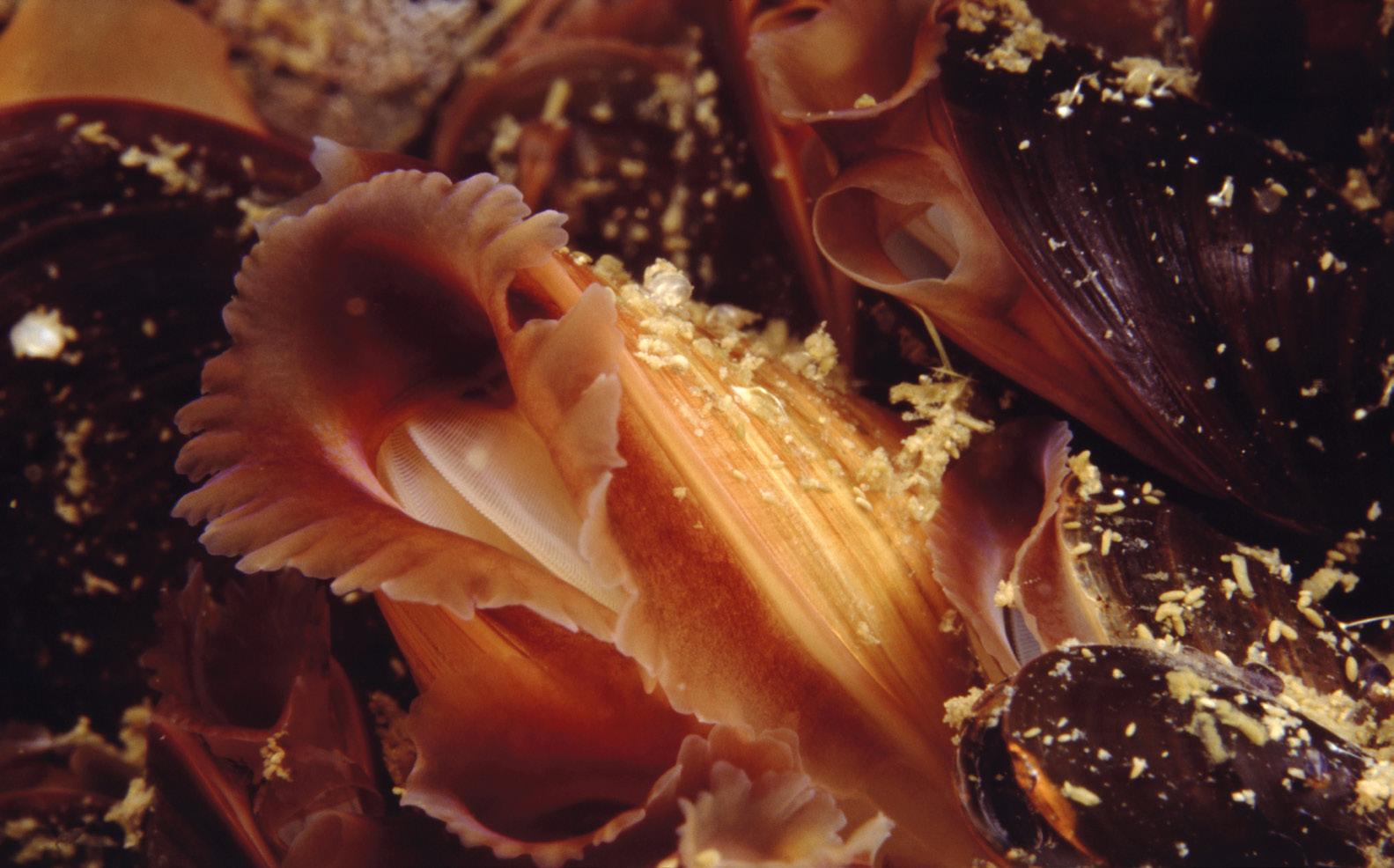 Blåmusslan hindrar övergödning genom att effektivt filtrera bort näring från vattnet. Foto: Visa