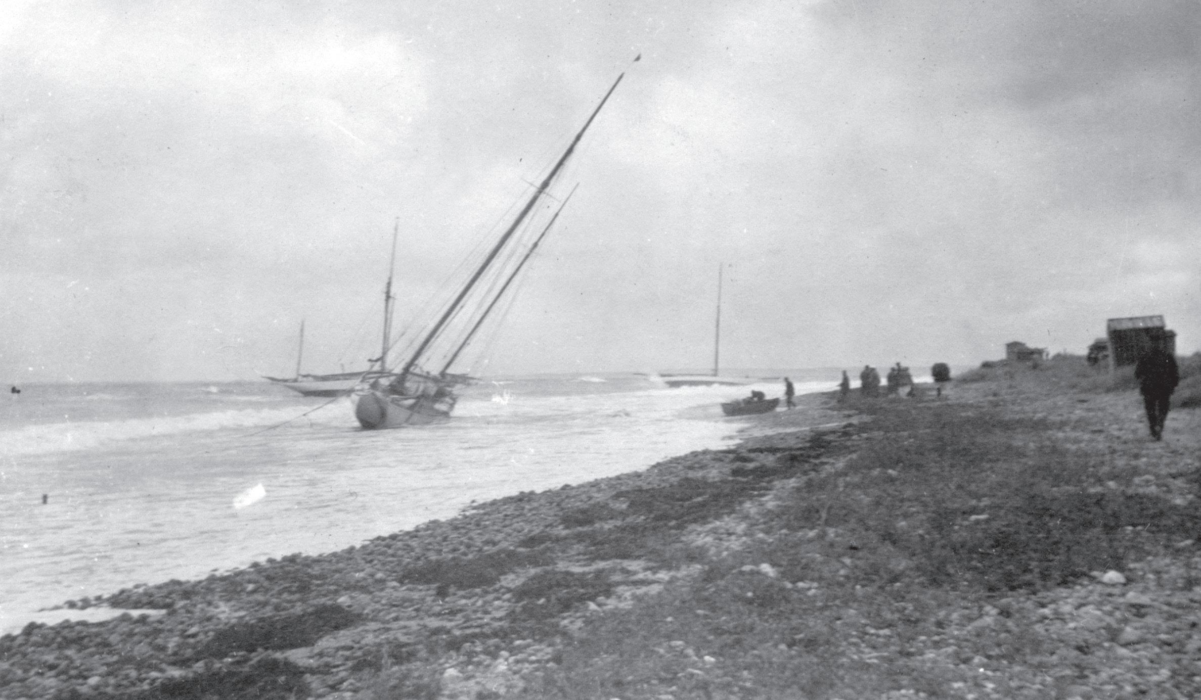 De tre lustyachterna hade lördag eftermiddag kastat ankar ca 400 meter från land, men på kvällen blåste det plötsligt upp något av en orkan, varvid ankarna efter en kort tid gav efter, och då drev båtarna snabbt mot kusten i den starka nordvästliga vinden. Hela skeendet var så snabbt att man inte hade tid att hissa segel och sticka ut till havs. (Notera att yachterna inte på den tiden hade motor.)