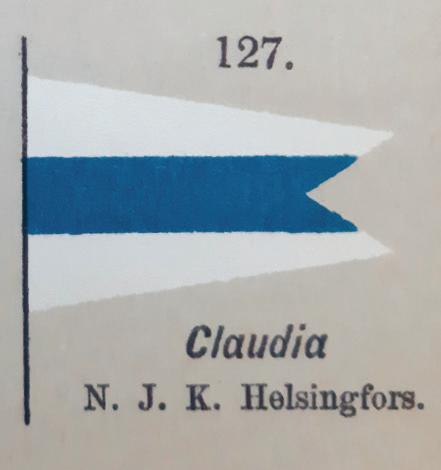 Claudias igenkänningsvimpel 127 i Finlands segelföreningar 1894.
