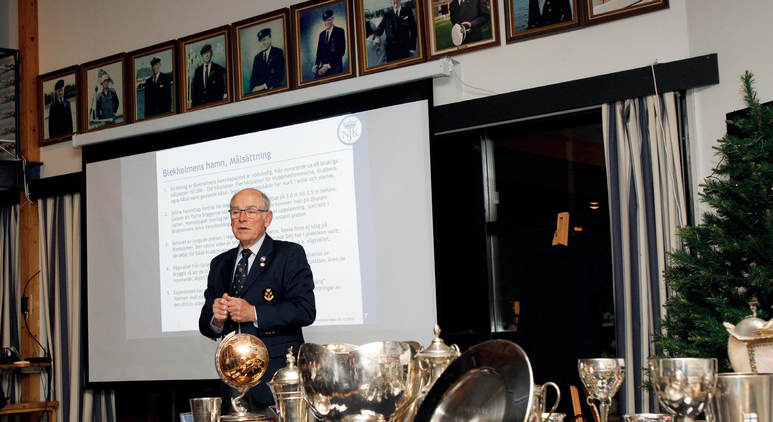 farande framstår som ett frågetecken, där ingen vet hur och när NJK eventuellt kan inviga ett nytt seglingscenter. Diskussionerna kommer säkert länge att fortsätta också utanför klubbhuset. Under mötet konstaterades att ju längre ovissheten om Björkholmen dröjer desto mer förberedd kan klubben vara då dagen för flyttet gryr. Då kanske den utbyggda hamnen på Blekholmen fyller inkomstbortfallet från vinterförvaringen? Höstmötet drog ut på tiden men mötet var konstruktivt och stämningen var god, mötesdeltagarna var nöjda. De unga juniorerna tyckte säkert det var jobbigt att måsta vänta så länge på prisutdelningen. Kanske kunde man börja med prisutdelningen och efter det ta itu med agendans stadgeenliga ärenden?