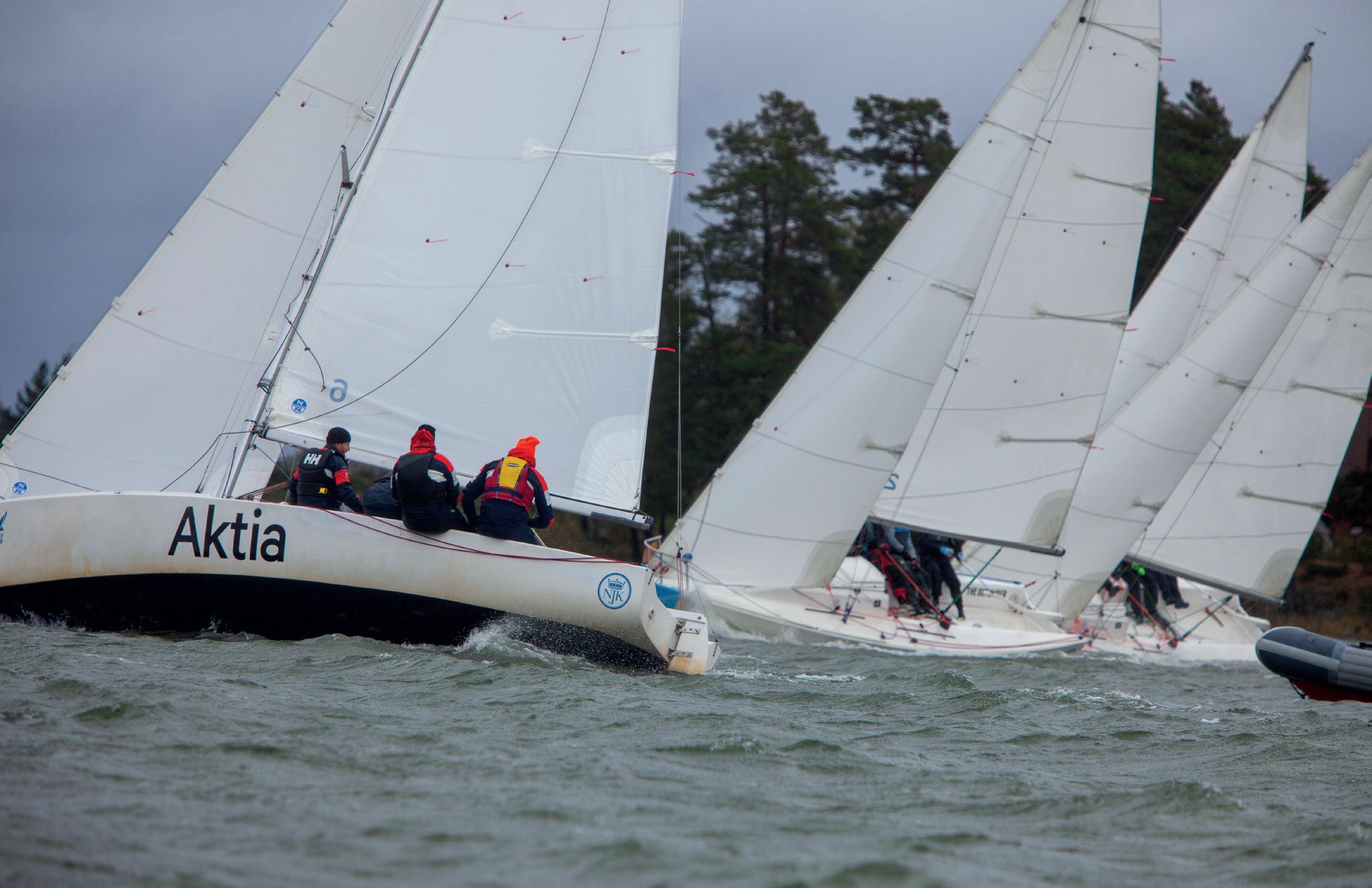 Den aktiva träningssäsongen höll som vanligt på till första veckan i oktober och veckoslutet 14-15.10 seglades Season End Regatta i friskt, omväxlande oktoberväder. Tävlingen lockade tio besättningar och under lördagen seglades, som ifjol, korta sprintseglingar hela dagen. Tio starter med sju båtar genomfördes under dagen så, att de besättningar som pausade hjälpte till med arrangemangen. Under ett kort och överraskande stiltje då vinden vände avnjöts lunch iland. Tusse Tallberg var snabbast under lördagen, tätt följd av Niki Blässar, Matias Knip och Victor Mesterton. Vinden ökade i styrka under eftermiddagen och då det var dags för bastu och middag, blåste det upp till storm.