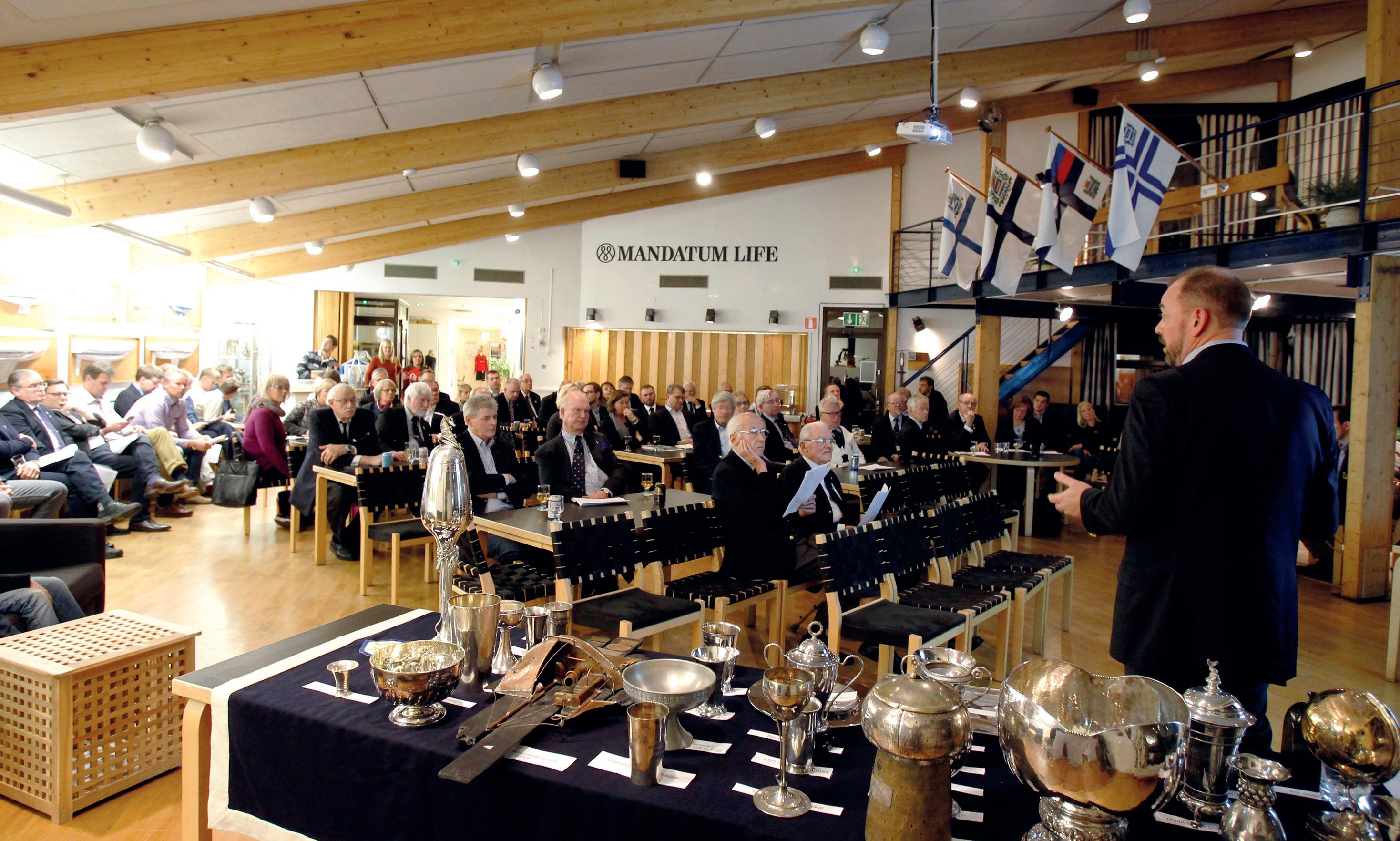 Fredagen den 2.10 samlades dryga 80 personer, stor som liten, på Björkholmen för flagghalning och säsongsavslutning. Flaggan halades till salut och vindar av Valio – stormen strax innan kl. 19, varefter kommodoren Claes Tallberg höll sitt tal. Efter säsongavslutningen hade vi ännu tillfälle att njuta av ett ovanligt vackert oktober-väder. Inne i Mandatum – salen stod grillbuffén med bl.a. hjort färdig efter att flaggan hade halats. Med läcker mat på tallriken och med god dryck i glaset kom festen igång även inomhus och nöjda röster hördes i pågående diskussioner. Mat fanns det så att alla torde ha blivit mätta och belåtna. Buffén sponsorerades av Mandatum Life samt Pan Nordic Meat.