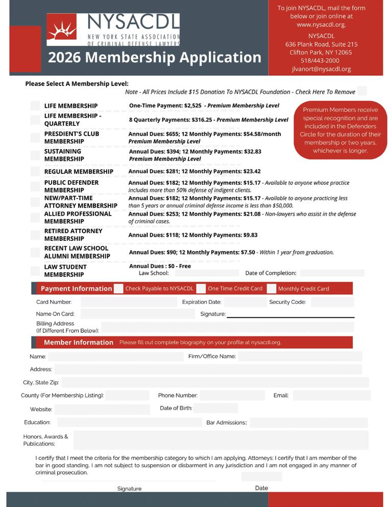 Ensure NYSACDL’s Con�nued Success with a Dona�on to The Defenders Circle!