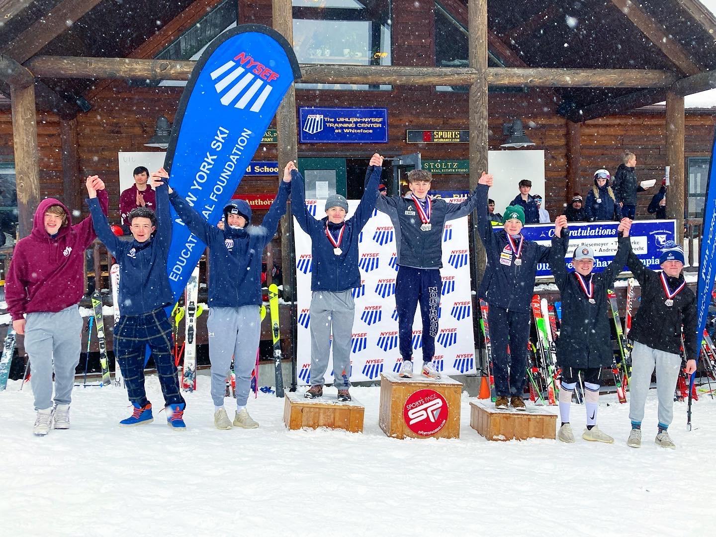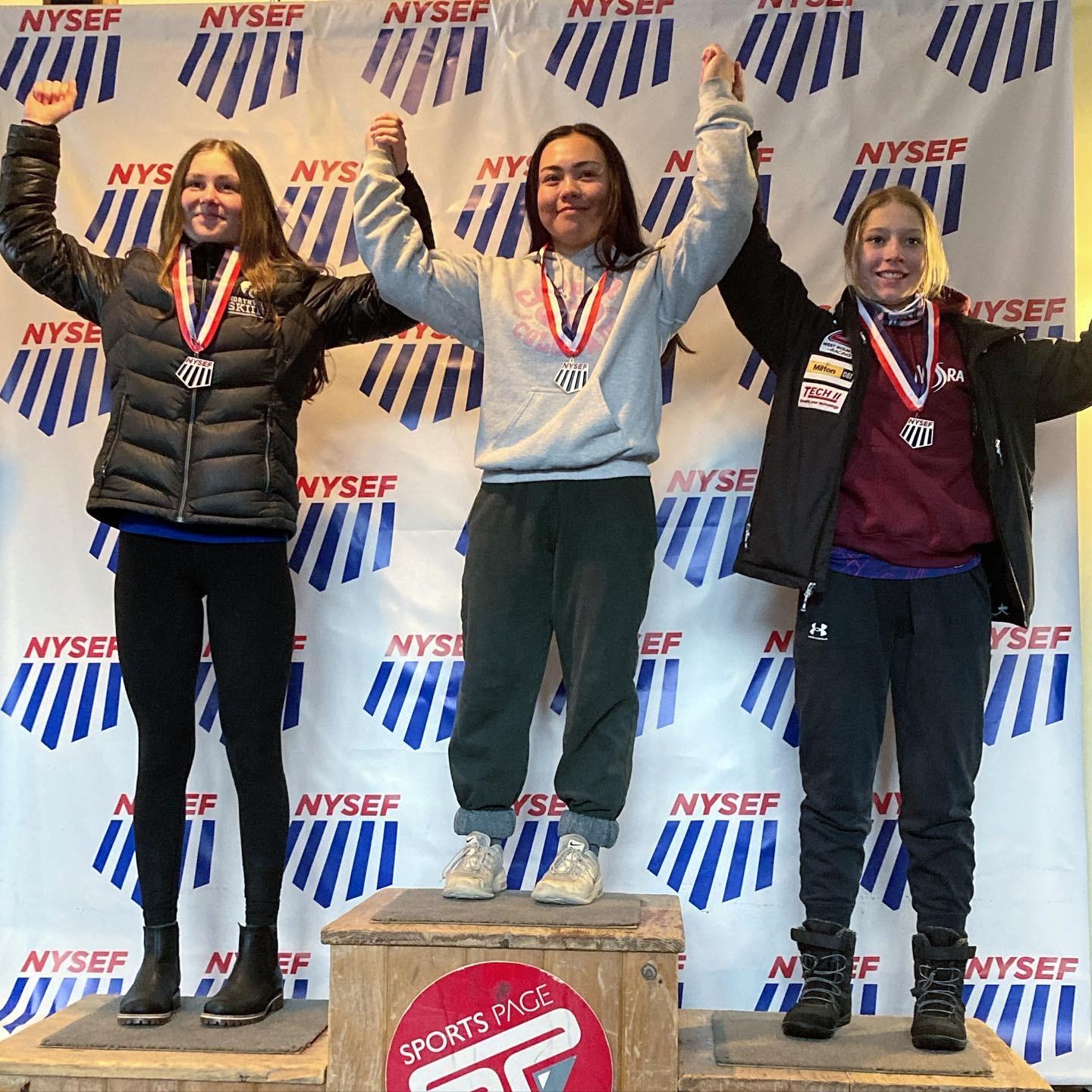 Next, the team shifted focus to NYSSRA U16 State Championships - also at Whiteface - where NYSEF athletes took home gold in every event Cara D swept all three ladies' races, with teammate Denny S. taking the men ' s super G and slalom wins. First-year Mikey M. won the men ' s giant slalom on the final day of the competition. NYSEF's Julianne B., Henry P., Cole VE., Paul F , Sydney K , and Aston F all found themselves on the podium as well over the weekend At the conclusion of state championships, thirteen NYSEF athletes were named to the Eastern Regionals team, and eight were named to the Eastern Finals team.