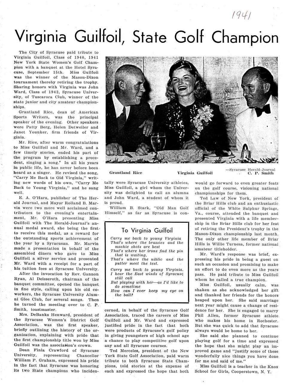 He held an honorary membership at the Royal Ancient Golf Club of St. Andrews in Scotland, and played as part of an international team that participated in England and Sweden in 1949.