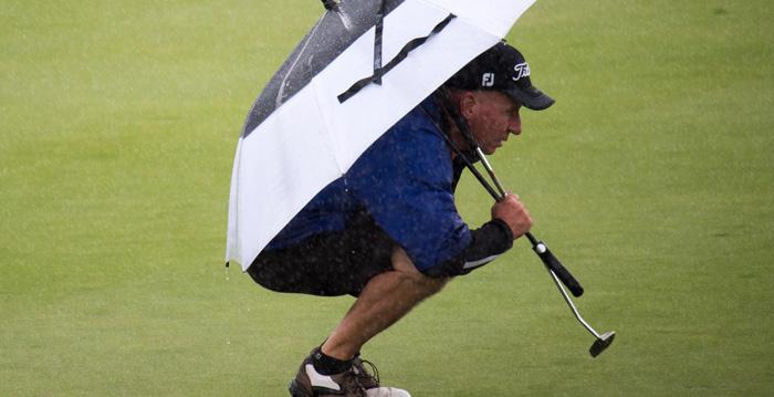 Groups were called off the golf course at 10am, about 30 minutes after the leaders teed off, as heavy rain led to puddling that slowly emerged on greens around the course. After over an hour in a delay, the tournament committee attempted to begin play again, but continued rain and the course’s saturation forced them to pull players off the course a second time, eventually leading to a decision to cancel the final 18 holes.