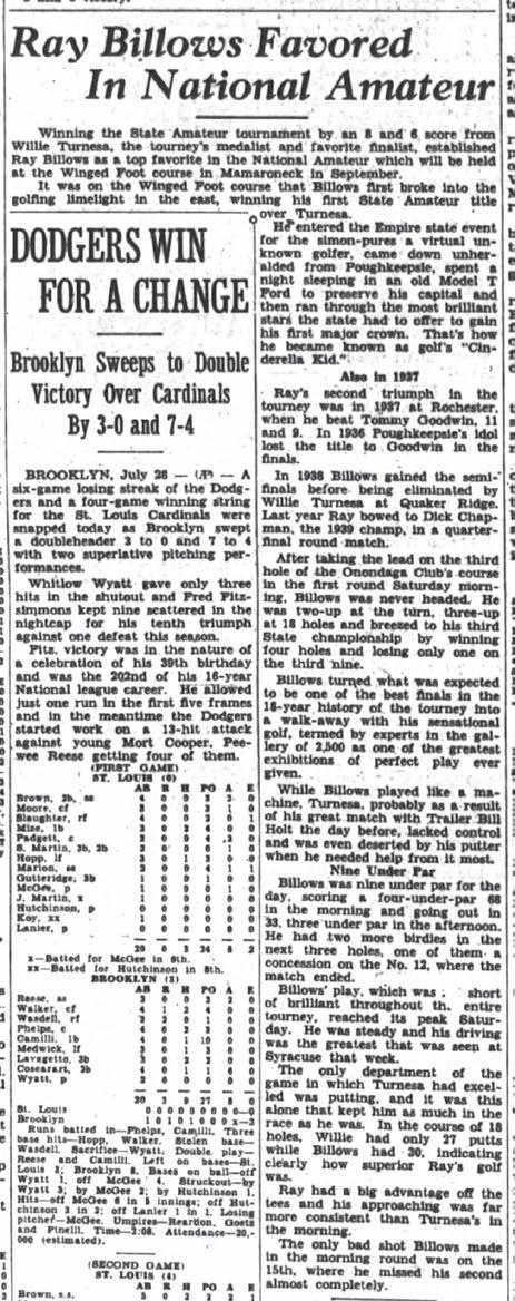 In 1940, Ray Billows of Poughkeepsie won his third NYS Amateur title at Onondaga, knocking off the 1938 New York State and U.S. Amateur champion Willie Turnesa of Elmsford, 8 and 6.