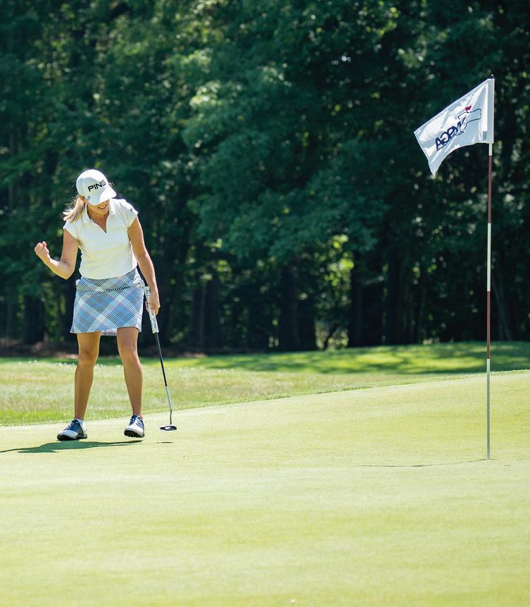 Schultz sunk her birdie putt, pumping her fist with excitement.