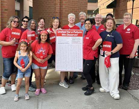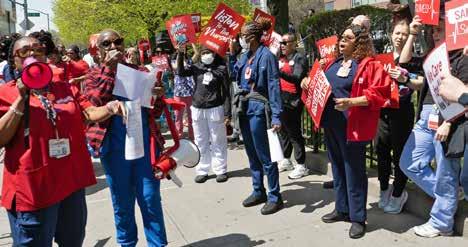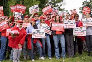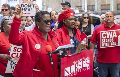 NYSNA nurses stepped up the pressure on the hospital and campaigned for months for a fair contract. They marched on the boss and held a speak-out to demand that management return to the bargaining table and settle a fair contract with safe staffing and a real plan to recruit and retain nurses. They got the word out in the com-