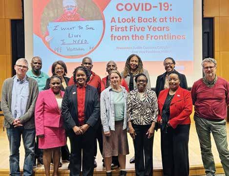 Dr. Judith Cutchin, DNP, RN, (front row, 3rd from left) alongside members of the NYSNA board of directors and conference organizers, at the Biopolitics of Global Health After COVID-19: An Interdisciplinary Conference.