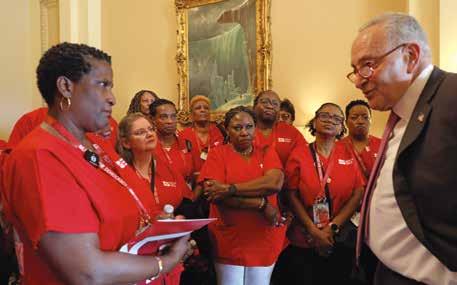 NYSNA nurses met with Senate Minority Leader Chuck Schumer about safe staffing and Medicaid cuts.