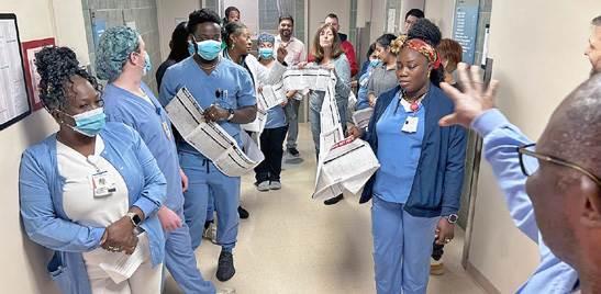 surg and step-down beds would worsen overcrowding and compromise patient care. Members made their voices heard loud and clear against a proposed restructuring that could harm patient care.