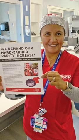 In November, NYSNA nurses won an arbitration case on a long-standing dispute with management. As part of the contract, Albany Med was supposed to provide uniforms to all nurses. When this didn’t happen, union nurses took action to enforce our contract. One highlight of the arbitration victory is that Albany Med will pay all nurses who did not receive