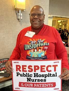 County Medical Center, who was attending the Convention for the fourth time, said her favorite part was, “Coming together, seeing the unity, feeling the energy of our union.” She noted that her unit’s accomplishments resonated with other members. “I’m very proud of our LBU; we worked really hard to be leaders and now people want to imitate what we’re doing with staffing. People will come to us and say, ‘Whoa, how did you do that? With staffing and getting such a good contract and the things we do to fight,’” she continued.
