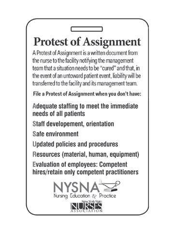 Thank you for your participation in “Assignment Under Protest: A Nurse’s Rights and Responsibilities,” a new continuing education (CE) activity offered by NYSNA. NYSNA members and nonmembers are invited to take part in this activity, and you do not need to be a resident of New York State.